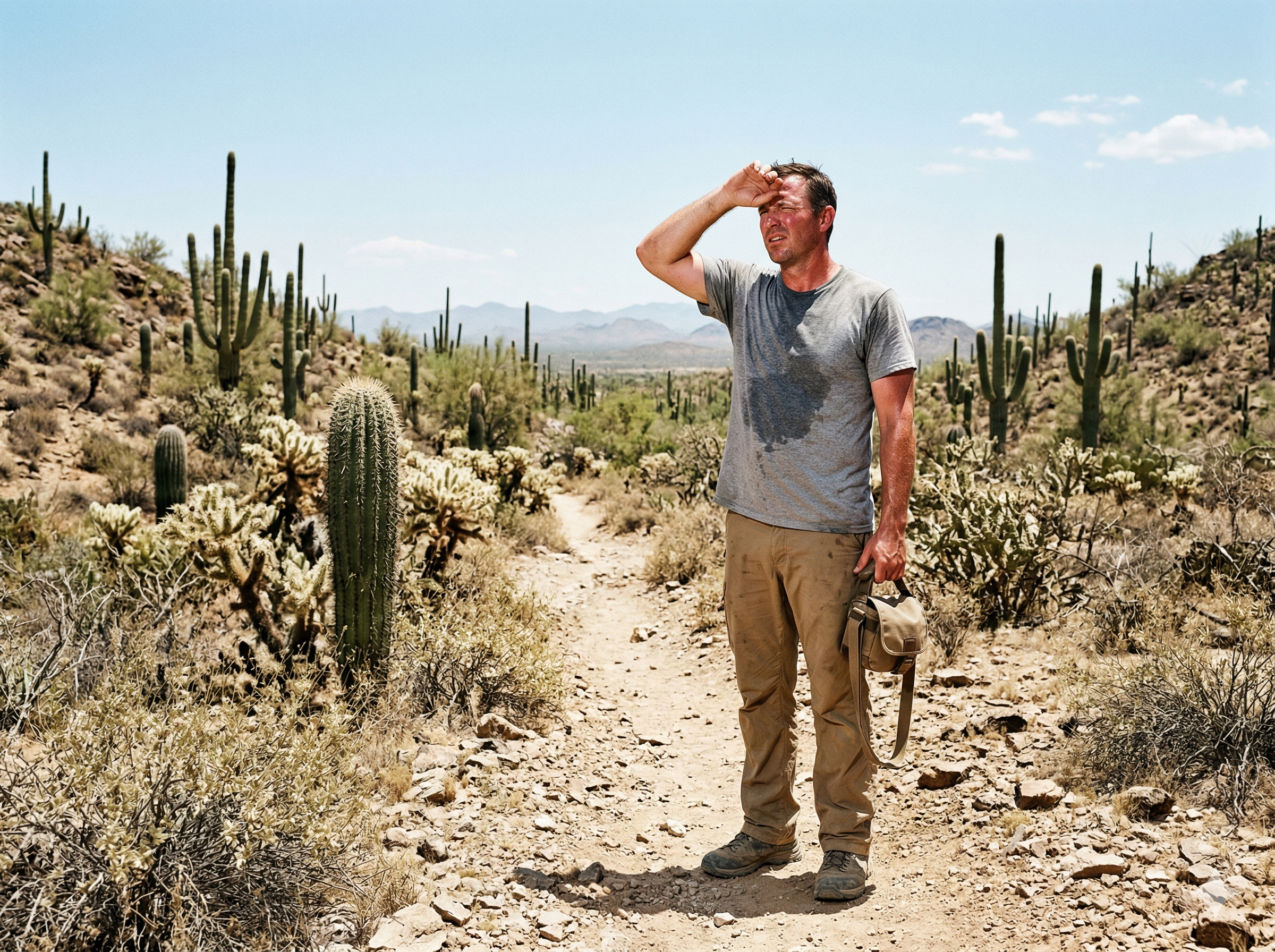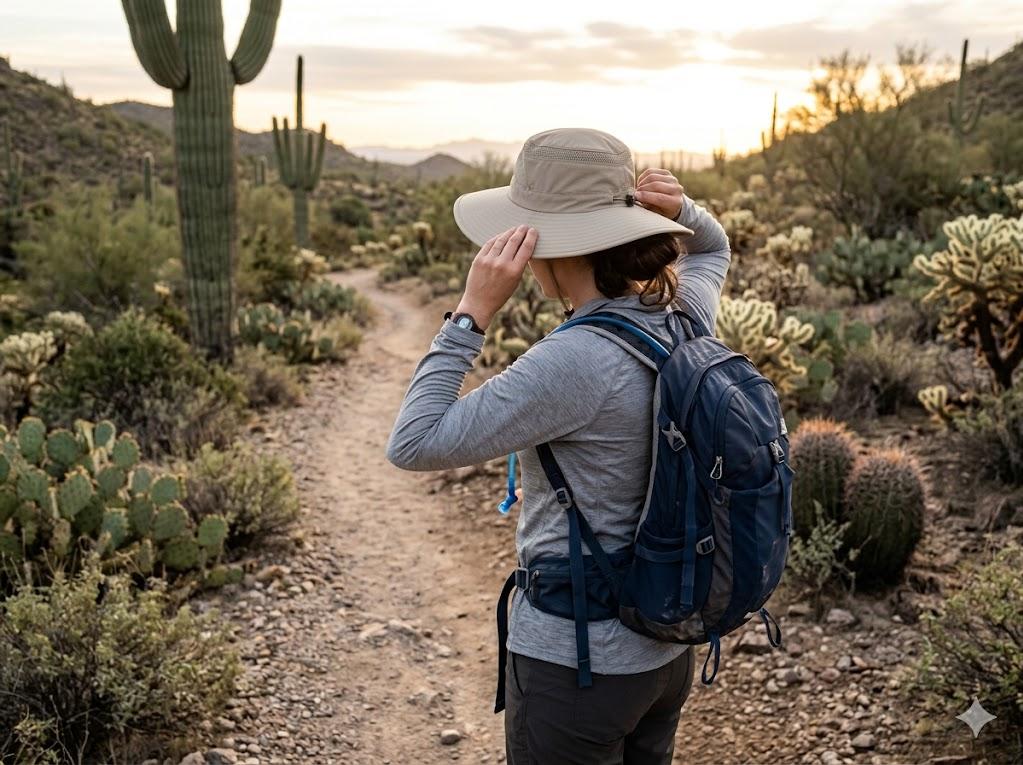 Heat alone is challenging. Heat combined with direct sun exposure is what catches most visitors off guard. UV levels in Arizona are among the highest in the country, and the lack of shade means you’re exposed for long stretches.